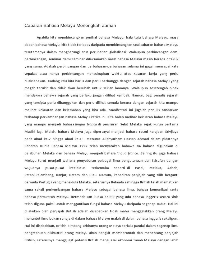 Cabaran Bahasa Melayu Dalam Era Globalisasi Pdf